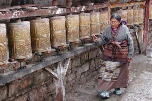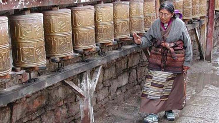 Llenas de mantras, las ruedas de oración se hacen girar durante las circunvalaciones.