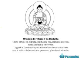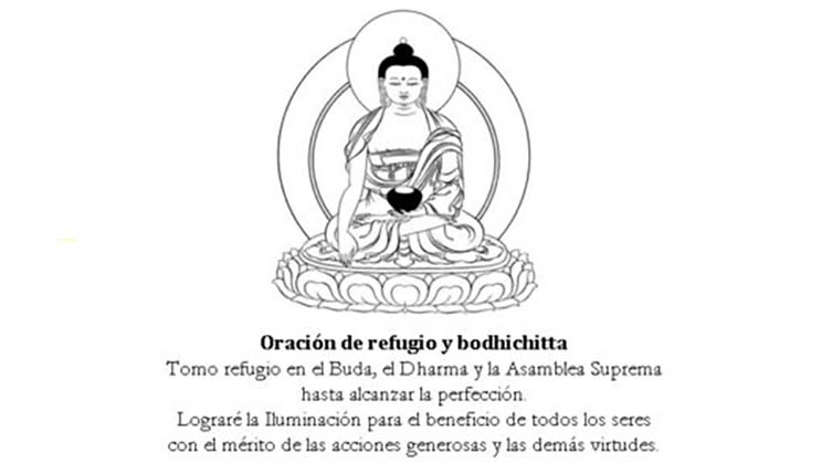 La toma de refugio: el refugio es la base de todas las prácticas espirituales. Recitar su oración ratifica nuestra confianza y compromiso con el mayor objeto de refugio: el Buddha, el Dharma y la Sangha. Y si le añadimos bodhichitta, incluimos la perfección del altruismo. Casi nada.
