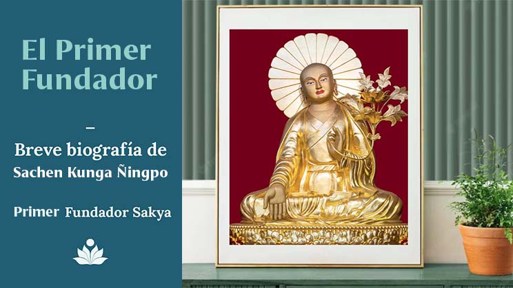 Una emanación de Avalokiteshvara —el Buddha de la Compasión—. Sachen Kunga Ñingpo nació entre muchas señales auspiciosas, y debido a que todos los que le vieron se llenaron de alegría, se le llamó Kunga Ñingpo, “Esencia de Alegría para Todos”.