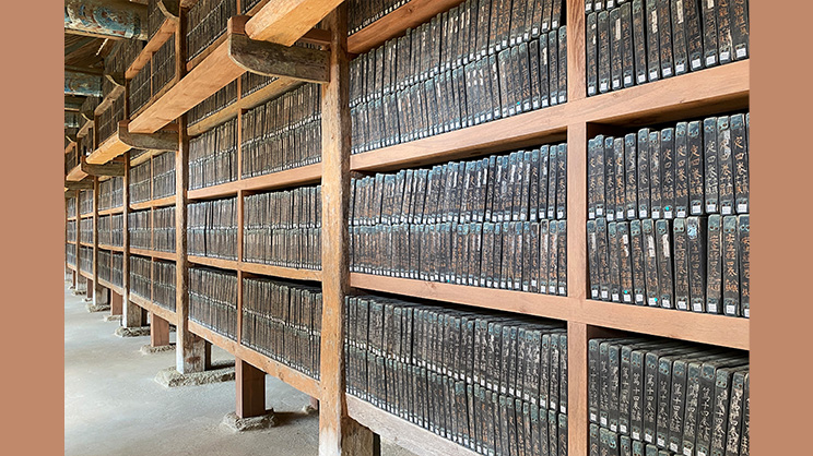 ―Tripitaka en su edición coreana compuesto por 81.258 xilografías, s. XIII e. c., conservado en el monasterio Haeinsa, provincia de Gyeonsang del sur (Corea del sur). Dicho Tripitaka coreano constituyó una de las bases textuales más fidedignas para componer el canon budista chino en su edición Taisho. Imagen de Bernard Gagnon, CC0 1.0 UNIVERSAL, via Wikimedia Commons―