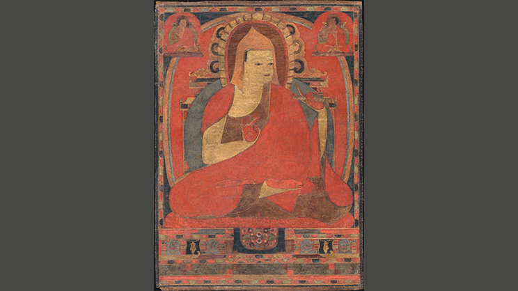 ―Lienzo pintado (thangka) del monje Atisha, Tíbet, c. 1100 e. c., The Metropolitan Museum of Art, New York (EE. UU.). Imagen de Unknown不具名 (Tíbet (un monasterio Kadampa)), Public domain, via Wikimedia Commons―