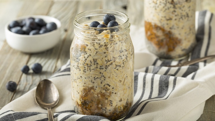 • Opción gachas (porridge) de avena (con o sin gluten). Dependiendo de la estación, puedes disfrutar de un porridge caliente o frío. Las gachas son una estupenda fuente de energía duradera, de fácil digestión y perfectas para mantener el enfoque. Agrega semillas de chía, canela y cacao puro para un toque antioxidante y relajante. Para acompañarlo, prepara un té chai (té negro) con o sin leche de avena.
