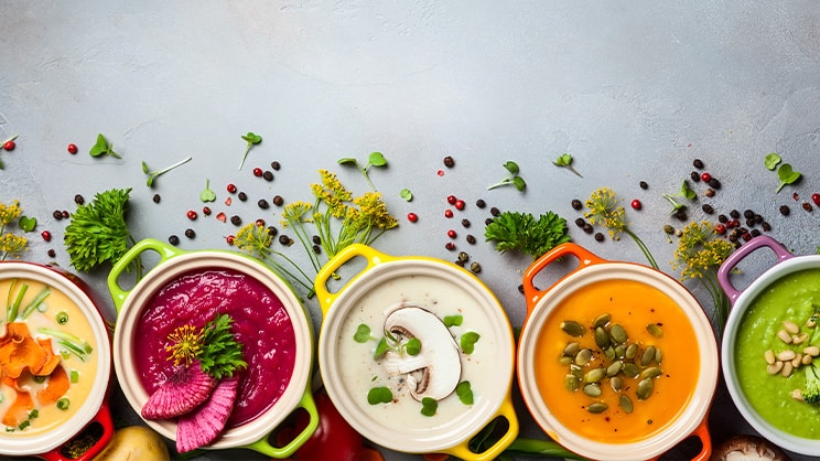 • Primer plato. Una sopa o crema de verduras es muy apropiada para proporcionar calor y confort al cuerpo. En verano una crema fría o una ensalada fresca te dejará sensación de ligereza sin sacrificar el sabor.