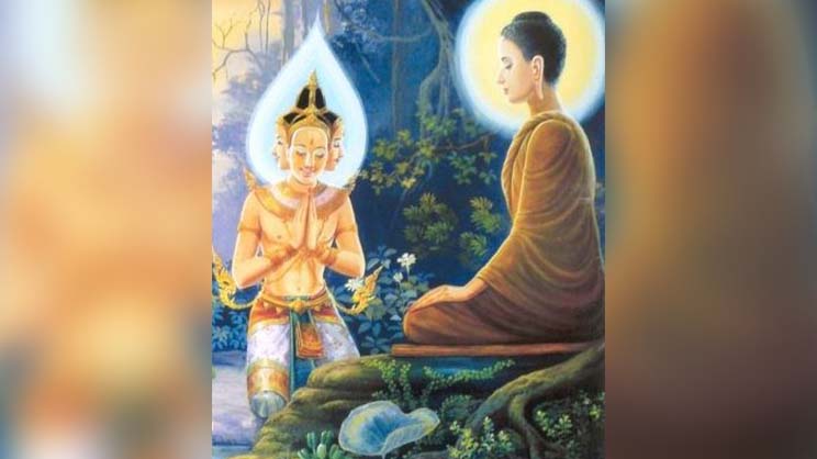 Satisfecho, Brahma rindió homenaje al Buddha y desapareció.