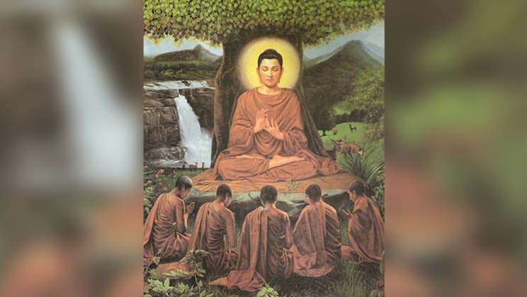 “No, Venerable Señor”, respondieron. Y entonces ocurrió: el Buddha les dio su primera enseñanza, el Discurso de la puesta en movimiento de la Rueda del Dharma. Días después, y tras un segundo discurso, los cinco exascetas lograron la liberación.
