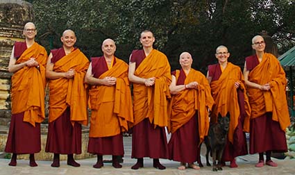 Venerables Damcho Gyaltsen, Damcho Rinchen, Kenrab Dorje, Khenpo Rinchen Gyaltsen, Kunga Dolkar, Jamyang Chokyi y Ngawang Pema en Bodhgaya, India (diciembre 2019).