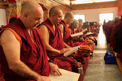 Los Sakya Trizin dirigen la oración. Acuden, además, grandes maestros, tulkus, lamas, monjas, monjes y personas laicas de muchas partes del mundo.