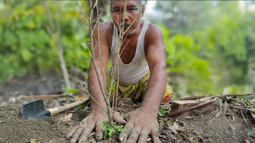 Jadav Payeng, “Forest Man” (Hombre Bosque) plantando un árbol en la Reserva Forestal Molai en Kokilamukh, Assam, India. Fuente: Forest Man Foundation