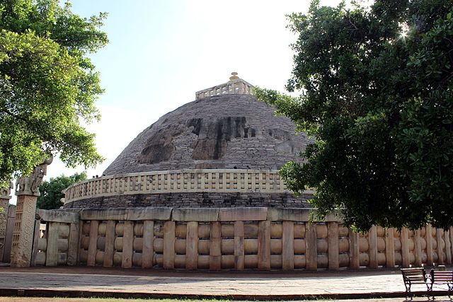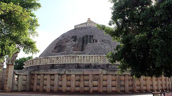 La Gran Estupa de Sanchi es uno de los monumentos de piedra más antiguos de la India, y la estupa más antigua del budismo. Data del reinado del emperador Ashoka (s. III a.e.c.), mide 16 metros de altura y 36 de diámetro, y en sus orígenes albergó varias reliquias del Buddha.  Hoy es Patrimonio de la Humanidad de la Unesco.