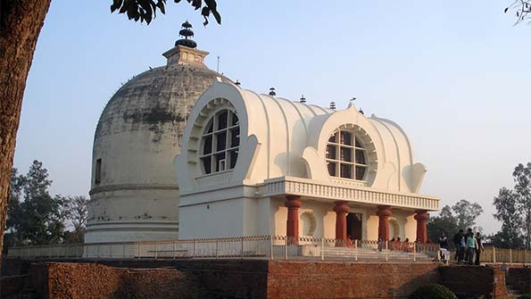 Mitad templo, mitad estupa, la de Kushinagar conmemora el lugar donde falleció el Buddha. Fue construida por Ashoka, pero cayó en desuso tras las invasiones musulmanas del siglo XIII. En 1956 fue reconstruida por el gobierno indio, y hoy alberga una estatua de 1.500 años del Buddha reclinado. Pese a lo austero de la decoración del interior, su atmósfera es extremadamente conmovedora —doy fe de ello—.