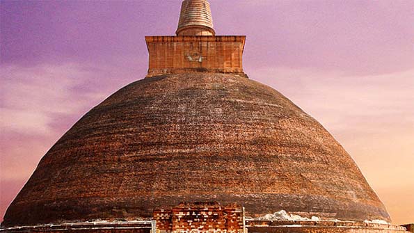La estupa Jetavanaramaya fue, con sus 122 metros de altura, la estupa más alta del mundo. Fue construida en el siglo IV por la monarquía sinalesa, pero el abandono que sufrió en el siglo XI la ciudad que la albergaba la dejó en ruinas. Un siglo después, otro monarca la restauró a su altura actual (71 metros). Hoy se cree que su interior alberga un cinturón que usó el Buddha y es una de las mayores atracciones turísticas y espirituales de Sri Lanka.