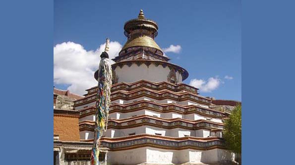 Con sus 32 metros de altura, el་Kumbum de Gyantse es la mayor estupa de Tíbet. Fue construido en el siglo XV, su arquitectura representa un mandala tridimensional y su interior alberga cien mil imágenes sagradas (de ahí el nombre: ku es “imagen sagrada” y mbum es ”cien mil”). En la actualidad se está construyendo una copia idéntica en Victoria (Australia) con el nombre de la Gran estupa de la gran compasión.