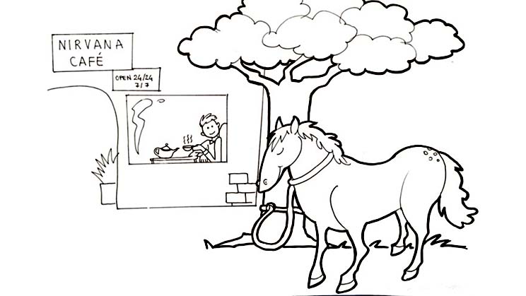 Para entender estos tres apoyos la analogía clásica es la del viajero que llega a una posada y deja su caballo atado con una cuerda cerca de una ventana. El caballo es la mente. La cuerda que ata el caballo es la recolección que mantiene la mente segura, centrada en el objeto virtuoso. La vigilancia es el viajero que observa desde la ventana, de vez en cuando, que el caballo no se haya desatado de la cuerda. Y el cuidado es esa metaconsciencia o actitud que se interesa por cómo está el caballo.