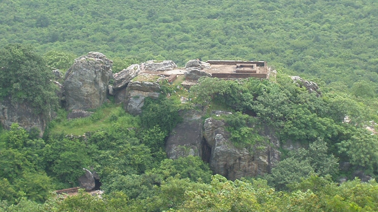 ―Vista general del santuario del “Pico del Buitre” (Grdhakuta), en Rajgir, Bihar (India). Según la tradición, el Buddha promulgó numerosos sutras del gran vehículo en dicho lugar. Foto de Tonii, CC BY-SA 3.0, via Wikimedia Commons―