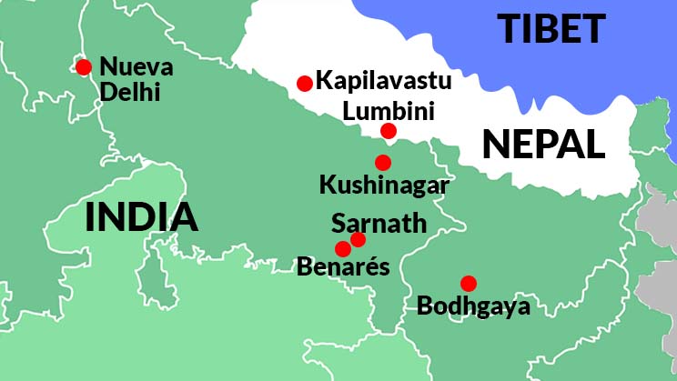 Los lugares sagrados donde el Buddha nació, se iluminó, dio su primera enseñanza y alcanzó el nirvana final