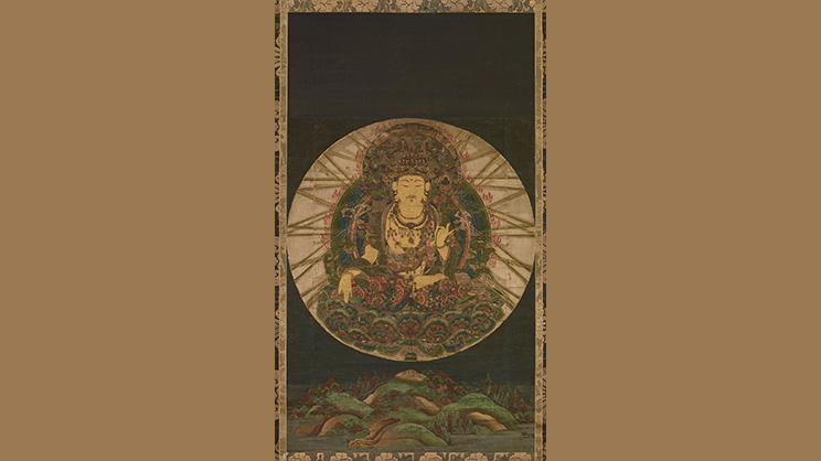 —Bodhisattva Akashagarbha (“Receptáculo del espacio”), período Kamakura, s. XIII e. c., pintura sobre seda. Imagen de Tokyo National Museum (Japón), Public domain, via Wikimedia Commons—