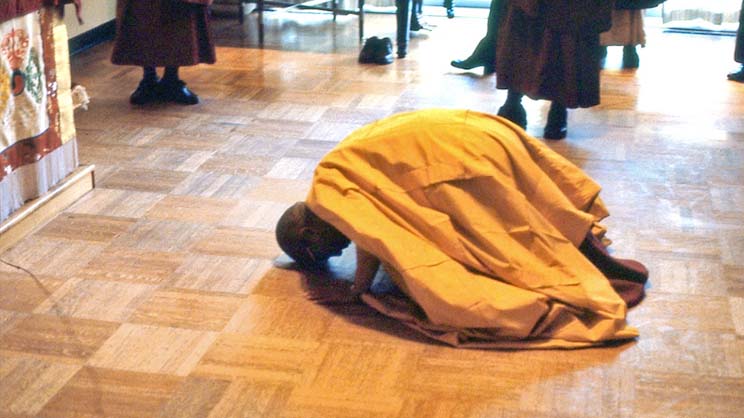 Las postraciones son una manera de expresar con nuestro cuerpo, palabra y mente que nos rendimos ante las Tres Joyas, siendo el gurú su representante.